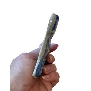 The M. A. Hadley Puppy Dog Art Pottery Ornament Plaque Wall Hanging is a beautifully crafted piece of art pottery featuring a charming dog design. Made from clay and stoneware, this 4-inch ornament is hand-painted with a glossy finish, adding a touch of cottagecore style to any space. Handmade in Louisville, this unique piece is a retired original creation by artist M. A. Hadley, perfect for dog lovers and collectors of artisanal pottery. It is in excellent condition with no chips, cracks or flaws.