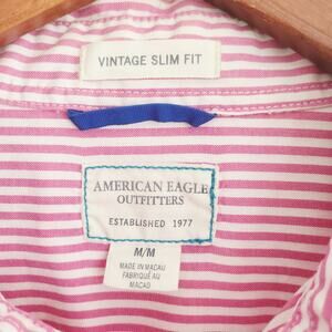 American Eagle vintage slim fit pink and white vertical stripe cotton button down. Roomy fit. Excellent condition Size M. About 19 inches across and 27 inches total length
