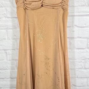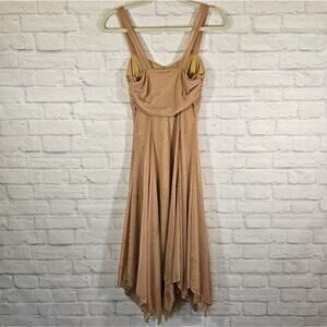 M Ariella Gold Y2K Asymmetrical Midi Dress Womens Size XS S Whimsical Fairy Rose