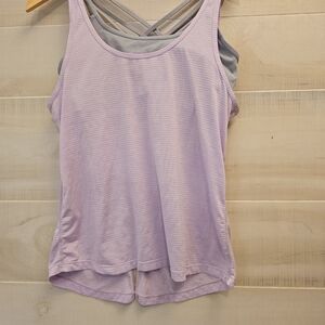 {M} Athleta Fully Focused Criss Cross Tank With Bra Pink Purple Lavender Gray