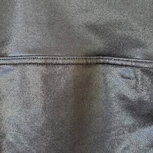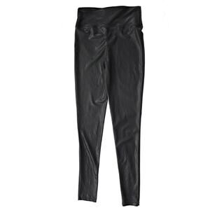 Sleek black leggings with a shiny finish. High-waisted design. Perfect for dance or casual wear.