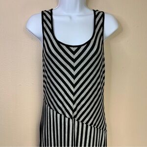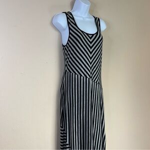 M Bar III Grey Black Striped Sleeveless Stretch Dress Medium 8 10 Maxi Long
