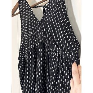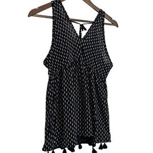 This is an a.n.a black sleeveless tank in size M, featuring a geometric pattern and a V-neckline. The style is described as Y2K babydoll romantic goth grunge empire boho, catering to women's fashion.