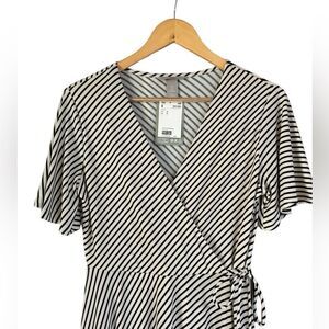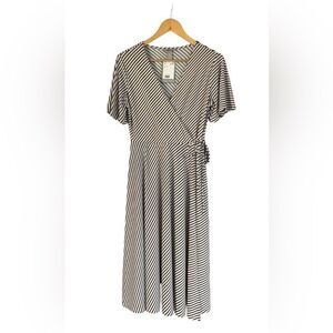 &M Black and White Striped Jersey Wrap Dress Size Small NWT 7 0471