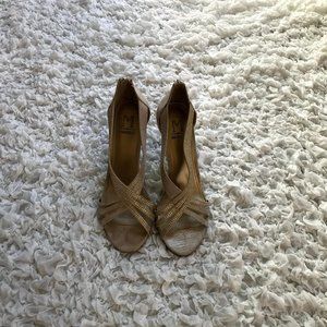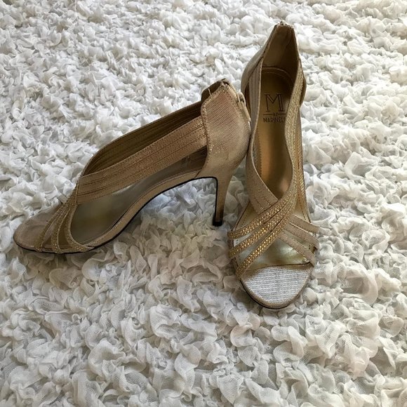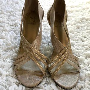 M By Marinelli gold heels size 8M glittery with some bling 4inch heels good condition zipper in the back Please let me know if you need additional photos!