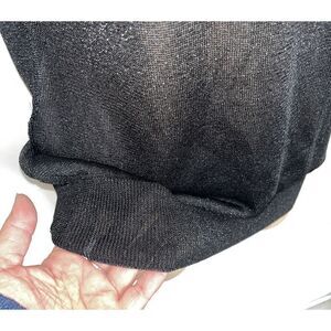 This is a beautiful metallic and black lurex holiday top and would be perfect for any nice event. It has a scoop neck line and the sleeves are cap and cuffed. There is a knit band around the bottom of the hem.