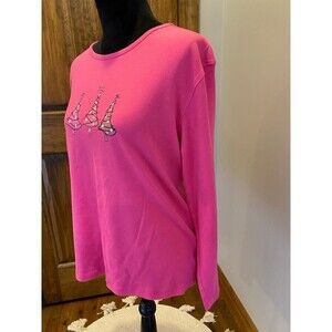 M & C Sportswear T Shirt Bright Pink Size XL Christmas Tree Long Sleeve Holiday