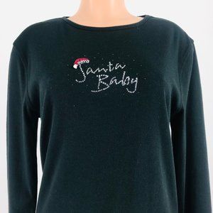 M & C Sportswear Women's Top Size 3XL Black Santa Baby Long Sleeve