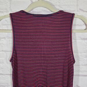 Elevate your casual wardrobe with this stylish sleeveless top. Featuring a chic orange and navy striped pattern, it's perfect for any occasion. Enjoy comfort and style in one piece.
