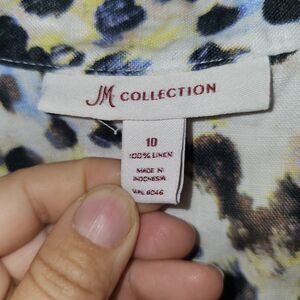 Stay stylish and comfortable with this M Collection Artsy Linen Blouse in Women's Size 10! Featuring pockets with beautiful reflective buttons, this versatile piece is a must-have for any wardrobe. #artsystyle #LinenBlouse #casualchic #versatileptops #MCollection