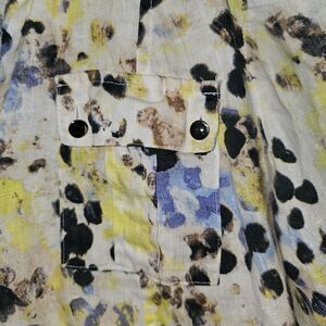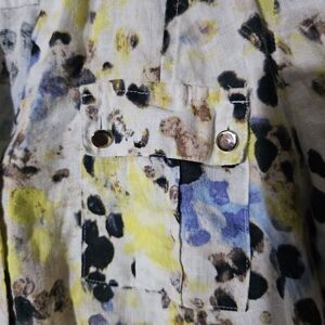 M Collection Artsy Linen Blouse Womens Size 10 Reflective Snap Buttons Pockets