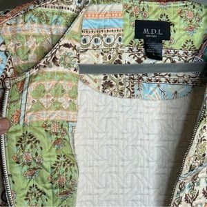 M. D. L. New York Multicolor Patchwork Quilted Like Zipper Jacket size Large
