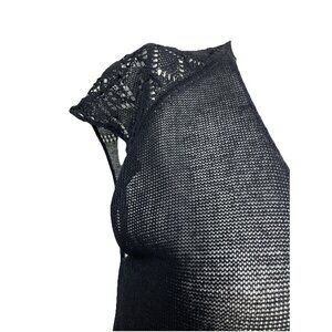 M Dries Van Noten Black Knit Sweater Short Sleeve Lace Sleeve Top Rayon Cotton