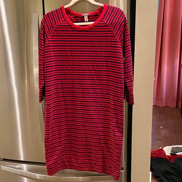 Merona Red and Navy Blue striped cotton dress 3/4 sleeves EUC Size L classic style and look