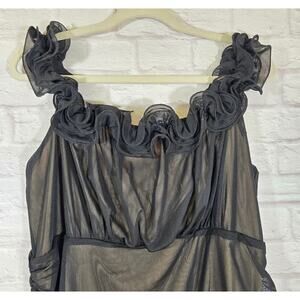 M Forever 21+ Black Sheer Mesh Ruffled Ruched Cocktail Dress Womens Plus Size 3X details: