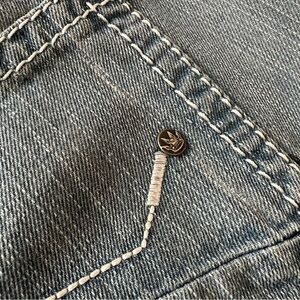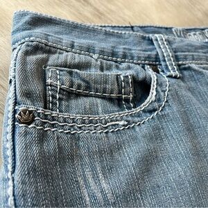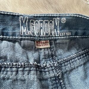 M. GORDON Jeans W34xL30 Distressed Holes Light Wash Stretch White Stitching