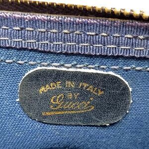 GUCCI Rolled Navy Blue Leather Handles Paired With Cream Coated Canvas and Navy GG Web Design Are Two of The Main Features That Make This Bag So Beautiful. The Brass Lock, Zipper and Feet Most Assuredly Add Character While Also Keeping The Bag and It’s Contents Safe.