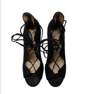 Elegant black heels with lace-up design. Perfect for any occasion. Sleek and stylish.