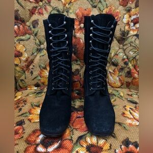 M Gemi black suede lace-up boots with zipper and 3 inch heel. Size says 10.5 but they’re narrow so they fit more like a 9. I wore them maybe 3 times, lots of life left in these beauties!