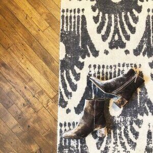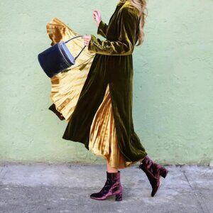 The booties' design is both modern and timeless, featuring a sleek silhouette that can effortlessly transition from casual to formal settings. The crushed velvet lends a rich, tactile feel, enhancing their overall allure. Their versatility is evident, as they pair beautifully with a range of outfits—from tailored suits to casual jeans—making them a staple piece for various occasions. Whether worn day or night, these booties offer both style and comfort, elevating any ensemble with their unique, luxurious material.