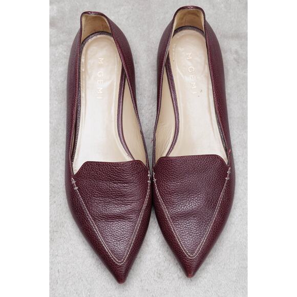 M Gemi Burgundy Pebbled Leather Pointed Toe Flats Womens Size EU 40.5 US 9.5