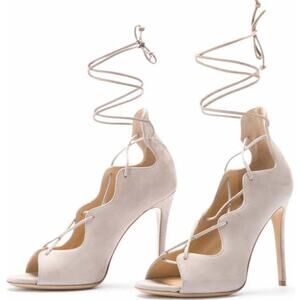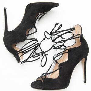 M. Gemi Designer The Marea Black Suede Strappy Stilletto Heels Size 37.5 US 7