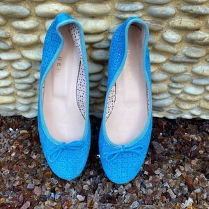 M Gemi Marine Blue Leather Suede Open Weave Ballet Flats. Size 39.5 (8.5) EUC!