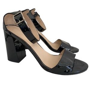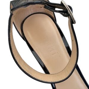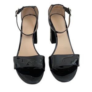 M Gemi Patent Leather Ankle Wrap Block Heels