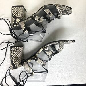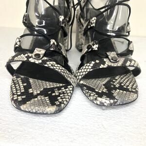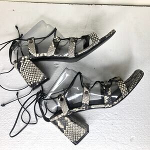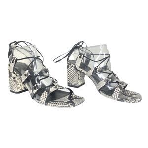 M Gemi Sandal Heel Snake Python Gladiator Tie up Straps Block Heel Square Toe 37
