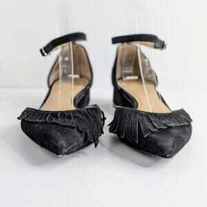 M. Gemi Shoes Womens 40 Black Suede Fringe Pointy Toe Ankle Strap Low Heel