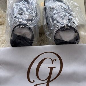 Elegant snakeskin pattern. Comfortable slide design. Perfect for versatile wear. Printed leather. Includes box and dust cover. NIB
