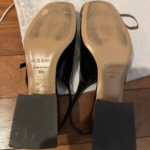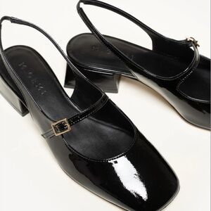 M. Gemi Black patent Mary Jane square toe sling back.