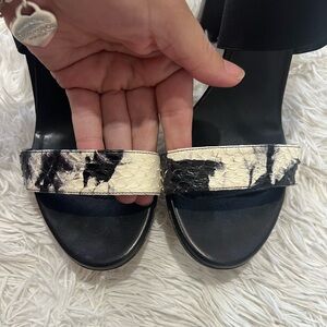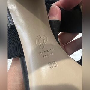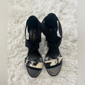 M. Gemi The Aria Criss Cross Elastic Sandal - Size 38 US 7.5 - Black with snack embossed toe straps - elastic - criss cross - pre owned - great condition- hand made