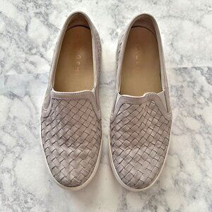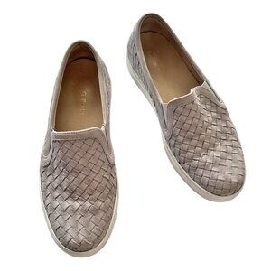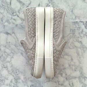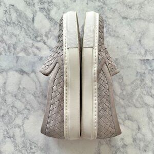 M. Gemi The Cerchio Slip On Sneaker in Dove Gray. Handwoven Italian Nappa leather. Genuine leather interior and lining. Specially-designed removable cushioned footbed for cloud-like steps. Super-lightweight EVA rubber sole bottom for maximum flexibility and comfort. Handmade in Tuscany, Italy. Lattice leather gives Bottega Veneta vibes. Quiet luxury style. Perfect for the airport, office, running errands, etc.