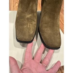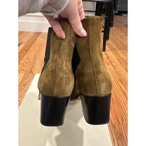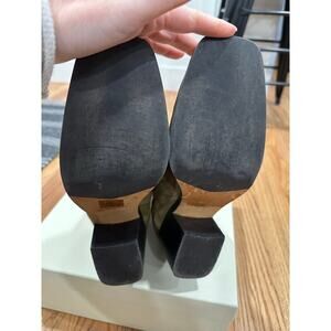 These look they were worn inside once. There is a faint dusting a dirt on the bottoms of the soles. No other signs that they were ever worn.