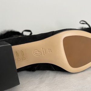 M. Gemi black suede boots with fur trim, size 7. Never worn, pristine condition.