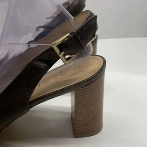 Beautiful and Classic M. Gemi Calamo Slingback heels featuring a buckle closure and striated wood heel.