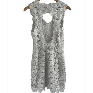 M & Guia Brazil Silver Gray Metallic Embroidered Lace with Cutout Back Dress