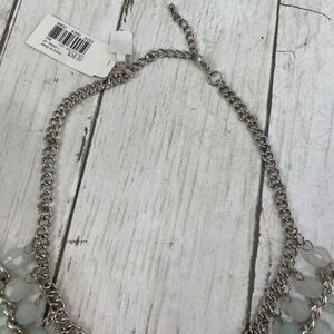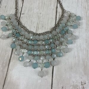 M. Haskell Beaded Bib Adjustable Length Necklace Light Blue Silver Tone NWT