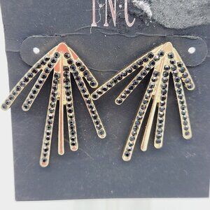 M. Haskell For INC Contemporary Earrings Gold Tone Black Rhinestone Pierced