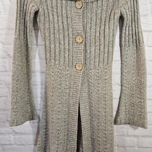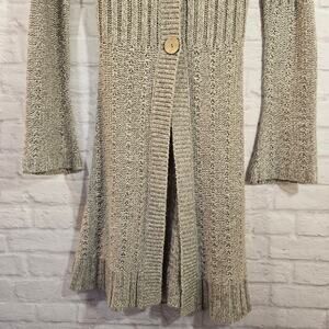 M It's Our Time Knit Long Cardigan with Wooden Buttons Y2K Women's Size S Taupe