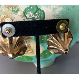 M J Carroll Pierced faux Gold Leaf earrings, very elegant piece