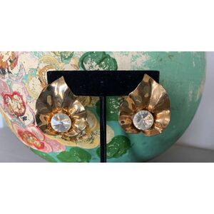 M J Carroll Pierced Pyramid Crystal Center Leaf earrings, Vintage