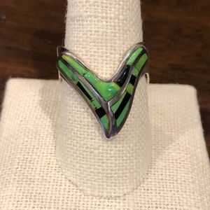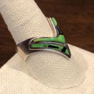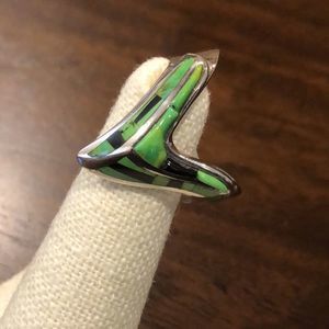M JAY KING DTR Unisex Green Turquoise Sterling Silver Ring Sz 10-1/4