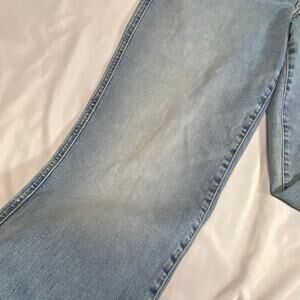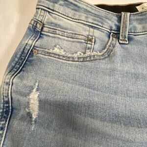 Gently used. Lots of wear left here. Distressed look. 4 pockets front and back and a watch pocket. Looks great on with flannel shirt or can be worn with classy tops. Please, see all photos for more details as they are part of my description. Comes from smoke and pet free studio. Approximate measurements are laying flat.