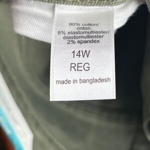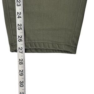 These olive green M Jeans are high-rise, cropped skinny jeans in a size 14W. Made of denim with a medium wash, they feature a 5-pocket design and have a waist size of 34 inches. The fabric includes spandex and cotton for comfort and stretch. The pants have a slim fit and are suitable for winter, fall, and spring. The style is versatile, with a neutral tone that can be paired with various outfits. Please be aware that due to its fabric type, this item may attract lint or hair. It will be shipping from a smoke-free, pet-friendly environment. While we strive to ensure that all items are clean and in excellent condition before shipping, some residual lint or hair may be present. We recommend using a lint roller or brush to maintain the item's appearance. I appreciate your understanding.