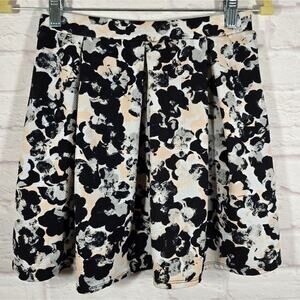 M Joe B By Joe Benbasset Floral Black White Pleated Skirt Womens Size S Flare