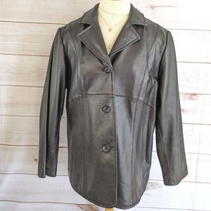 M. Julian Leather Button Down Moto Jacket in Jet Black Size 1X