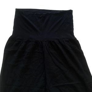 100% Rayon. Foldover waist. Black color. Ruffle hem. Wide leg.