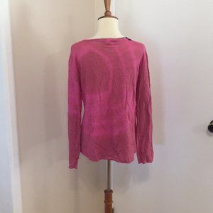This is a brand new LOVE TANJANE linen top. Long sleeves. Raw edges and distressed look. Slightly stretchy. Measures 17 inches across the bust and is about 22.5 inches in length. Made in southern california and hand dyed. Price is firm. Thanks for looking.